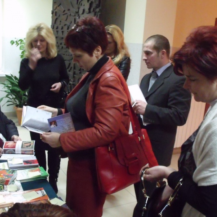 Stanisław Rogala jest autorem 60 książek. Niedawno obchodził 45 lat pracy twórczej i 65. rocznicę urodzin. Spotkanie poświęcone jego literaturze rozpoczęło się od recytacji wierszy z tomików: „Trzy poematy” oraz „Dom pod cisami”. Najpierw był przeczytany poemat „Droga”, na koniec - wiersz „Tyle lat”, który podsumowywał całość twórczości. Teksty recytowali: absolwent Zespołu Szkół, obecnie licealista Adrian Folwarski oraz uczeń drugiej klasy Gimnazjum Igor Sala. Ilustracją wierszy były zdjęcia krajobrazu świętokrzyskiego, zabytki, zwłaszcza sakralne, które publiczność oglądała na ekranie. Wybrał fotografie i rzutnik obsługiwał wikariusz z parafii w Rudkach, ksiądz Rafał Kusiak..