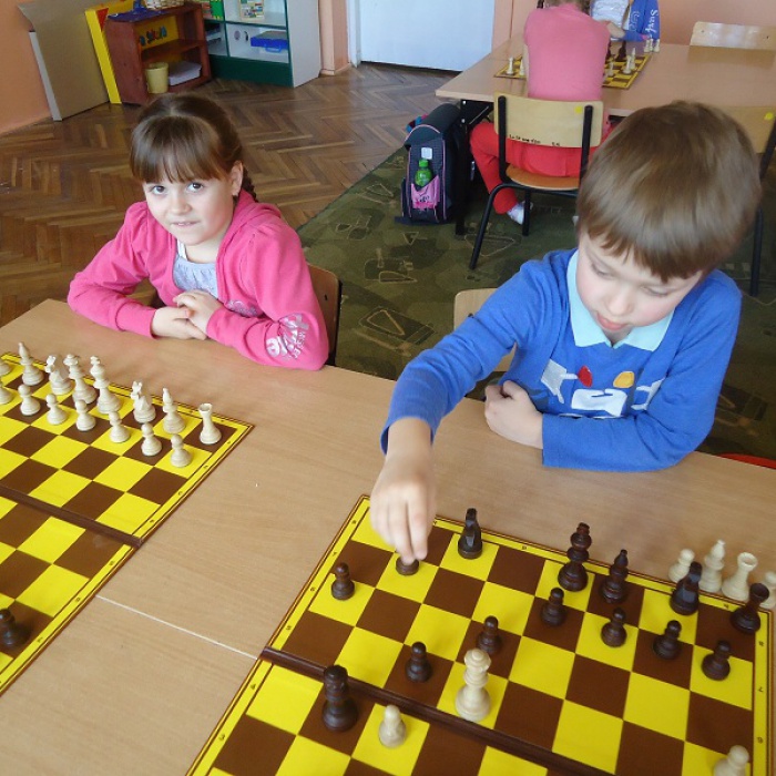 Poprzez zabawną formę zajęć coraz chętniej naśladują figury szachowe, poznają świat baśni i legend szachowych. Są autorami niezwykłych prac plastycznych. Zachęcone tematem bardzo szybko rozwijają umiejętności gry.