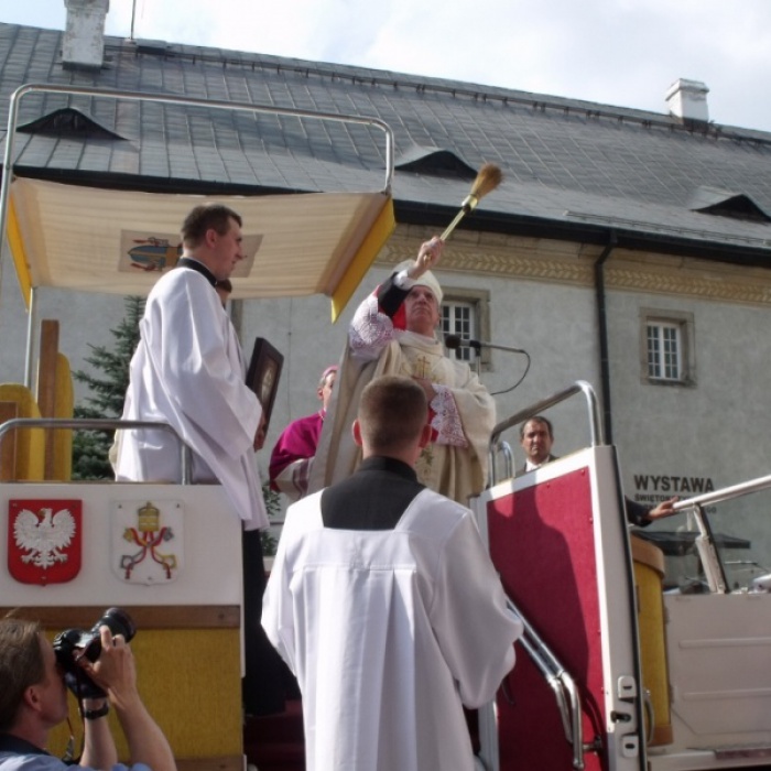 Po mszy wszyscy wierni udali się pod budynek klasztoru, gdzie arcybiskup Andrzej Dzięga pobłogosławił i poświęcił wieżę. - Módlmy się w intencji tych, którzy pierwszą wieżę budowali, o życie wieczne dla nich, a także za wszystkich, którzy we wzniesieniu tej wieży pomagali – powiedział. - Obdarz tę wieżę swoim błogosławieństwem, błogosław wszystkich fundatorów, budowniczych i dobroczyńców tej budowy, błogosław również nam i wszystkim pielgrzymom Świętego Krzyża i spraw, abyśmy zawsze byli świadkami twojej miłości i pokoju.
