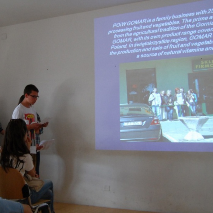 Uczniowie bardzo chętnie i aktywnie włączyli się w realizację projektu w pierwszym roku. Rozpoczęli od wykonania pracy konkursowej na logo projektu. Następnie, poznawali skład produktów żywnościowych, badali wpływ poszczególnych składników na zdrowie człowieka, a także dowiedzieli się w jaki sposób można zastąpić szkodliwe dla zdrowia składniki naturalnymi i zdrowymi. Pracą uczniów w realizacji tych zadań kierowały panie: Agnieszka Grzesik- Bereszka i p. Renata Witkowska. Kolejnym działaniem było przygotowanie programu artystycznego. Pod kierunkiem p. Ewy Kowalskiej, uczniowie opracowali scenariusz przedstawienia promującego zdrowe odżywianie, a następnie przygotowali sztukę w języku polskim, którą przedstawili całej społeczności szkolnej w maju. Sztuka została sfilmowana, a całość tekstu przetłumaczono na język angielski i umieszczono w filmie w formie napisów. Nagranie i opracowanie filmu wykonał p. Piotr Bereszka. Oprawę muzyczną przygotował p. Jacek Góra, a plastyczną p. Izabela Gawlik. W ramach projektu uczniowie wraz z opiekunami (p. Renatą Jadwidzic, p. Izabelą Gawlik oraz p. Adamem Dwojewskim) odwiedzili trzy miejsca produkcji dżemu owocowego: gospodarstwo ekologiczne państwa Wójcików w Trzciance, małą rodzinną firmę „Twój Ogród” w Starachowicach oraz duży zakład ”Gomar” w Pińczowie. Poznali tam różne sposoby wytwarzania dżemu, przeanalizowali jego skład i porównali produkty.