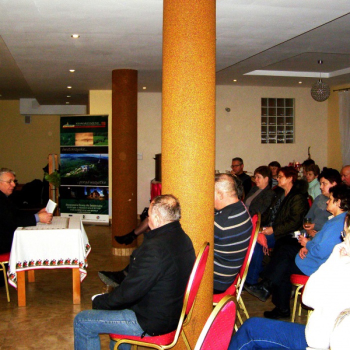 W sobotę 20 grudnia 2014r. odbył się wieczór autorski Leonarda Zyzmana, autora książek i tekstów związanych z regionem świętokrzyskim w ramach wydarzeń promujących Lokalną Strategię Stowarzyszenia Rozwoju Wsi Świętokrzyskiej. Dzięki uprzejmości Państwa Lidii i Pawła Wiącek z Trzcianki spotkanie zostało zainscenizowane w prowadzonym przez nich gospodarstwie agroturystycznym.