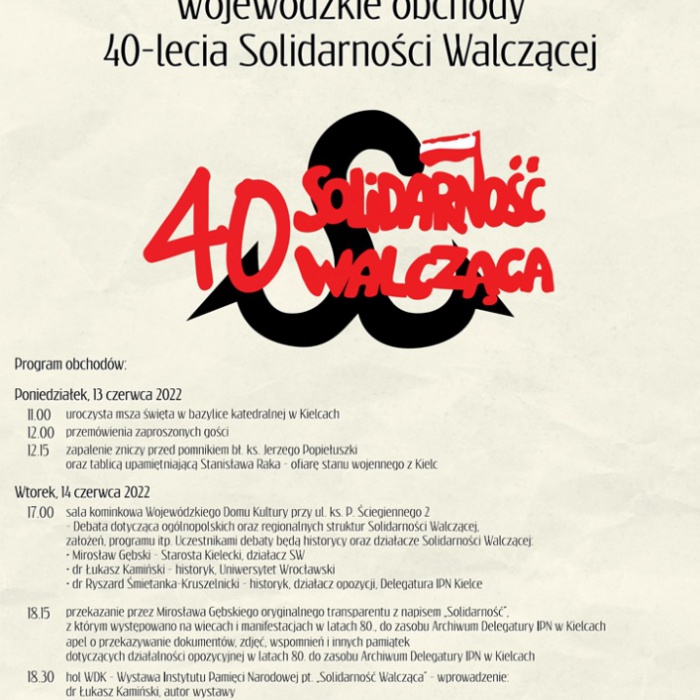 Strona główna » Aktualności » Wojewódzkie Obchody 40-lecia Solidarności Walczącej