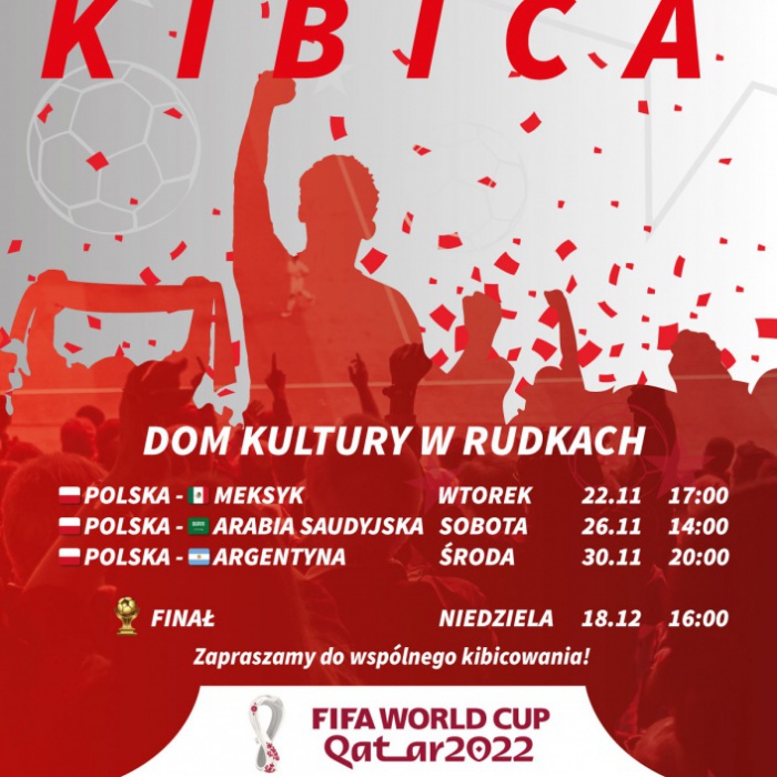 Strona główna » Aktualności » Gminna Strefa Kibica w Domu Kultury w Rudkach. MISTRZOSTWA ŚWIATA W PIŁCE NOŻNEJ 2022