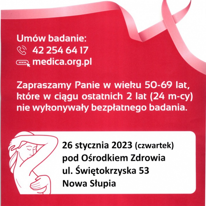 Strona główna » Aktualności » Bezpłatna mammografia pod Ośrodkiem Zdrowia w Nowej Słupi. 26 stycznia (czwartek)