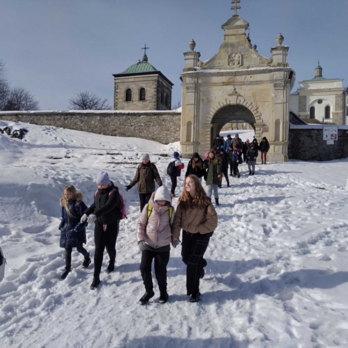 Druga grupa - z przewodnikiem Panem Jackiem Skrzypczakiem i nauczycielami Panią Agnieszką Pawlik-Osuch i Panem Robertem Domańskim - zwiedzała jedną z najstarszych świątyni w Polsce, kościół pod wezwaniem Św. Idziego w Tarczku, zaś na miejscowym cmentarzu oddała hołd weteranowi powstania styczniowego Pawłowi Kozieła, zmarłemu w 1931 r. Następnie udała się na krótki, lecz intensywny spacer na Górę Sieradowicką, skąd mogła podziwiać piękny i rozległy widok na Pasmo Łysogór. Odwiedziła również miejsca upamiętniające walki o naszą wolność. Kolejnym punktem historycznej wyprawy był Bodzentyn jako jedno z miejsc, gdzie w nocy z 22 na 23 stycznia 1863 r. rozpoczęło się powstanie styczniowe.