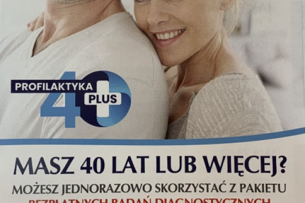 Profilaktyka 40 PLUS to program bezpłatnych badań profilaktycznych dla wszystkich Polaków i Polek powyżej 40. roku życia. Celem programu ...