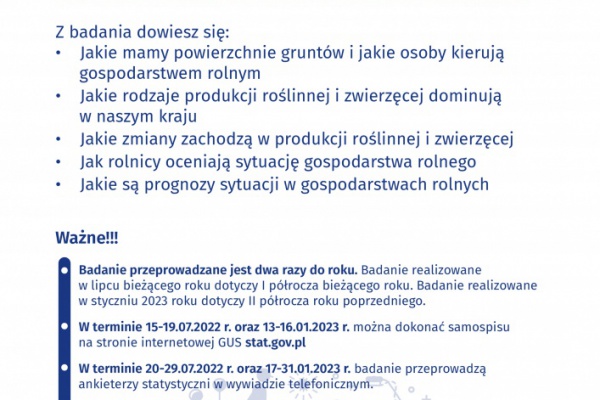 Od 15 do 29 lipca 2022 r. na terenie całej Polski zostanie przeprowadzone badanie statystyczne z zakresu rolnictwa: Ankieta koniunktury w ...